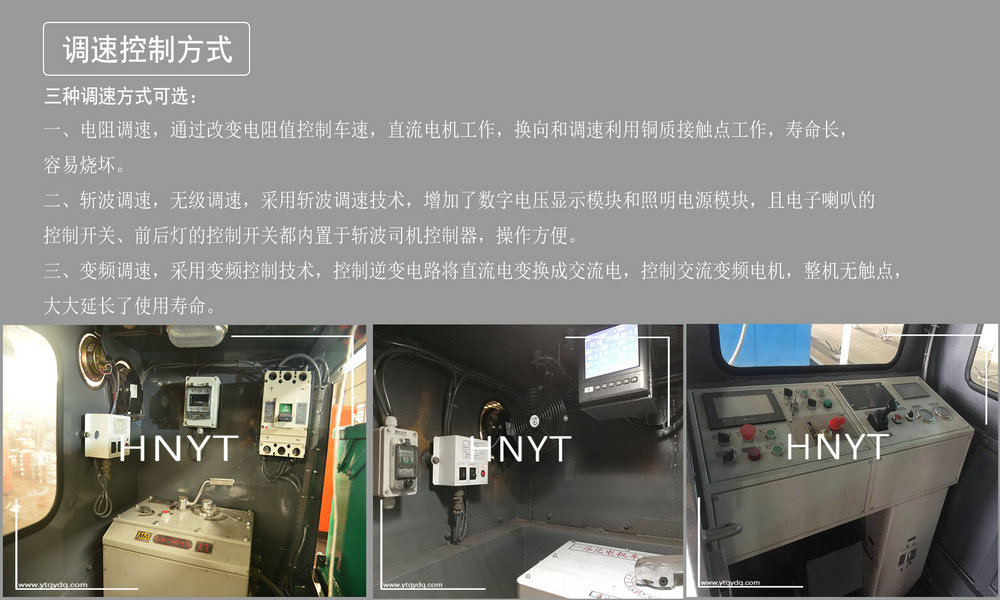 CJY7/6GB架線式工礦電機(jī)車(chē)采用一級(jí)傳動(dòng),采用IGBT調(diào)速或電阻調(diào)速或變頻調(diào)速;7T電機(jī)車(chē)電壓分為250V、550V兩種。其特點(diǎn)是:軸距短、車(chē)身剛度好、緩沖性能好。機(jī)車(chē)制動(dòng)方式采用機(jī)械制動(dòng)、電氣制動(dòng),制動(dòng)性平穩(wěn)可靠。